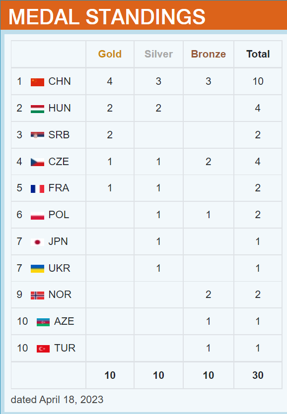 利马站奖牌榜。图片来自国际射击运动联合会官网
